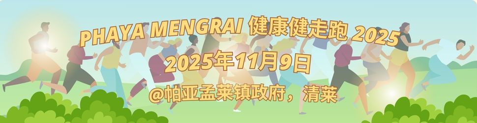 2025年11月9日(星期日):: “用心奔跑·一起前行”——帕亚孟莱慈善健走跑 2025 地点: 清莱府帕亚孟莱镇自治市(Phaya Mengrai Subdistrict Municipality) 详情: https://pmros.ksom2.net/running/index.php 一起跑遍帕亚孟莱县路线——2025年11月9日(星期日)